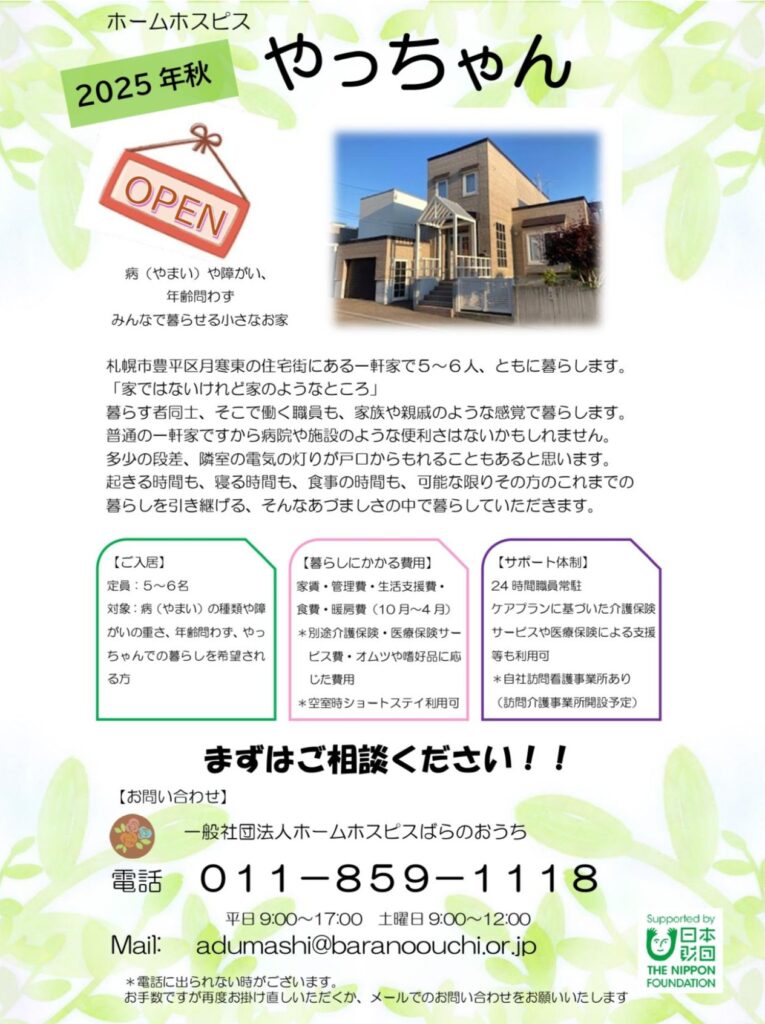 ホームホスピスやっちゃんは、秋開設を目指して現在住宅改修中です。