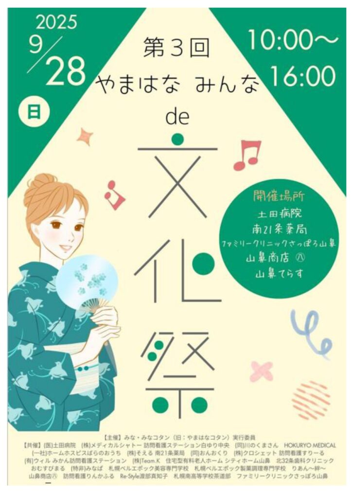 私たちが任意団体ホームホスピス北海道で活動していた頃から、地域で頑張る仲間たちと共に、札幌市中央区山鼻地域でお祭りを開催してきました。今年は第3回になります。