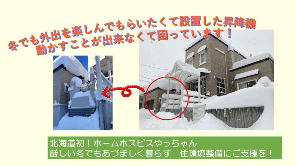 外出を楽しんでもらいたくて設置した昇降機、大雪の影響で動かすことが出来なくて困っています。