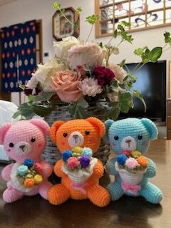 やっちゃんの居間の本棚には3匹のくまさんがいます。近くに住んでいる編み物の得意な若者が作ってくれて、私たちだけではなく来訪される方の心をほっこりさせてくれます。